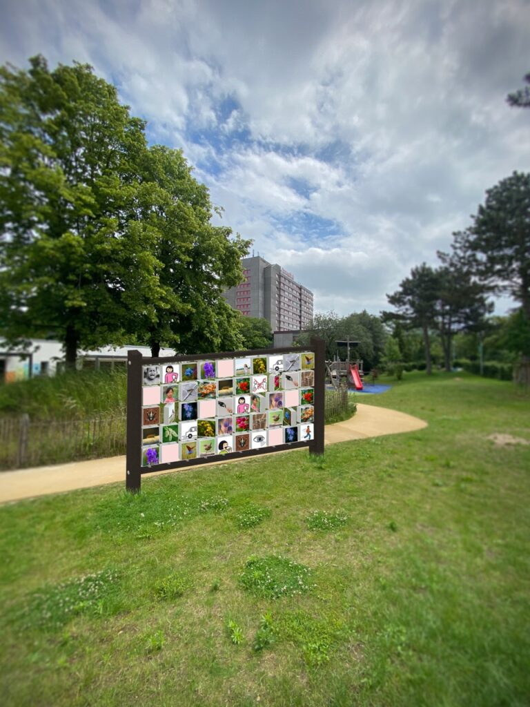 Die Symbole werden je nach Aufstellort (Kita, Schule, Freibad, Küste, Berge, Stadt, Land, Fluss) individuell zusammengestellt. Wir empfehlen ein Beteiligungsformat, bei dem die Gruppen ihre Memory Bilder selbst gestalten. So erreichen Sie Identifikation – und das Memory wird zum besonderen Wahrzeichen des Ortes.