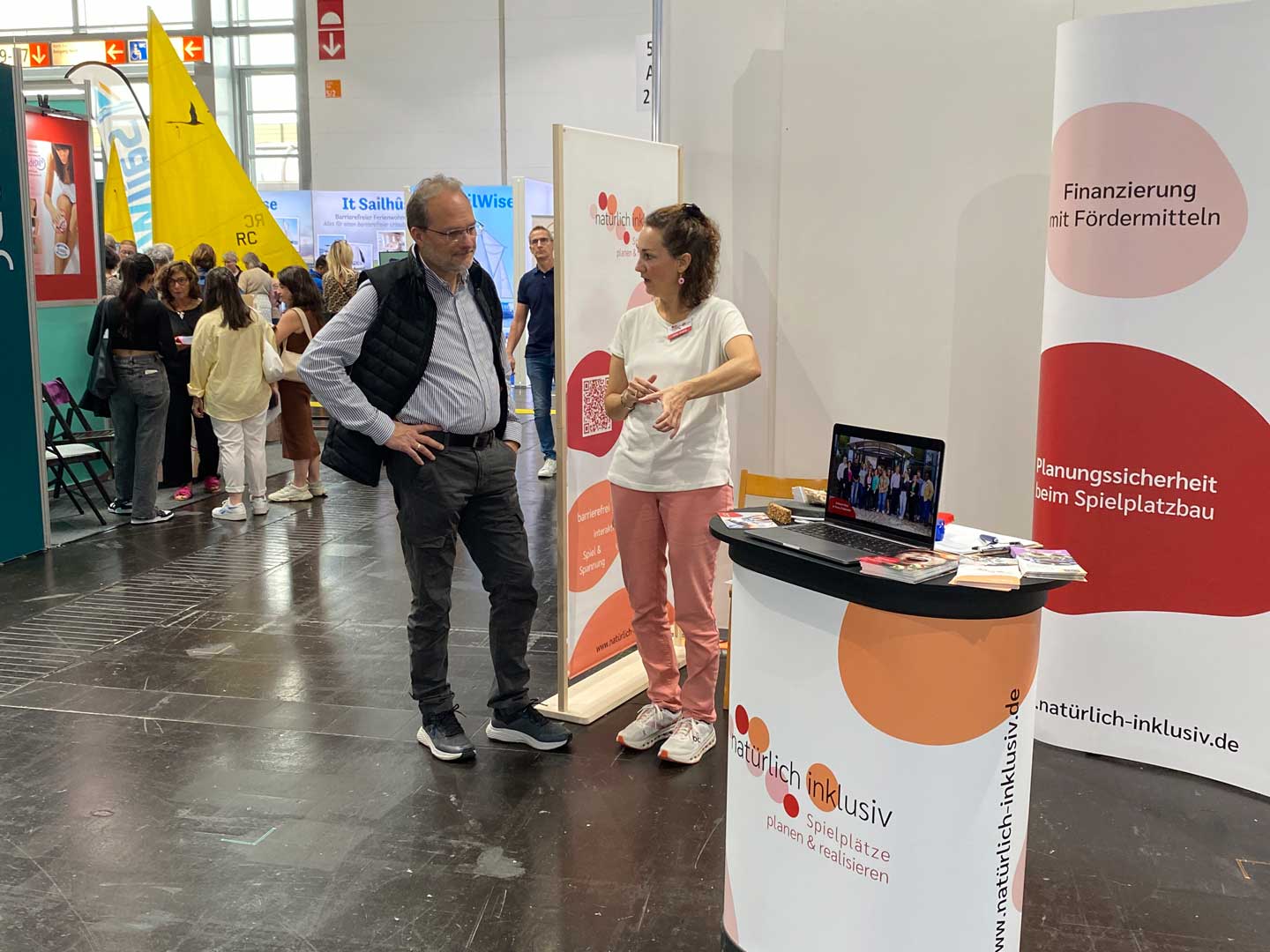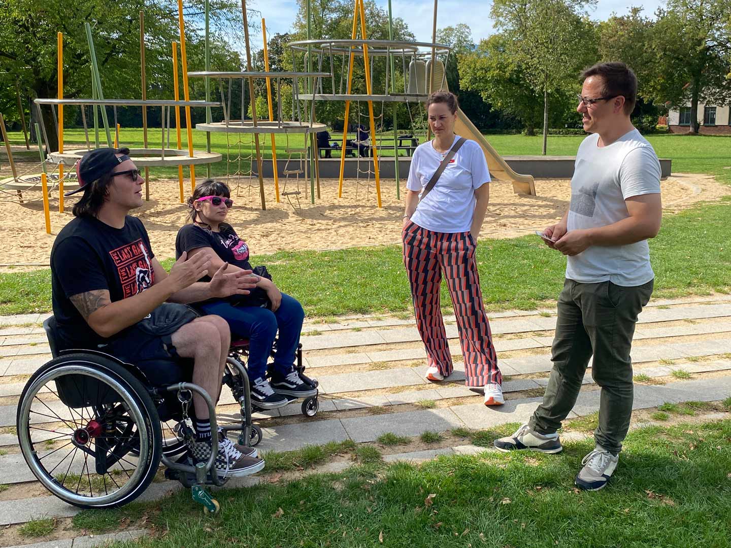 Im Vorfeld der Messe haben wir eine Spielplatzbegehung im Nordpark organisiert. Wir haben gezeigt, wie Inklusion im öffentlichen Raum erreicht werden könnte.