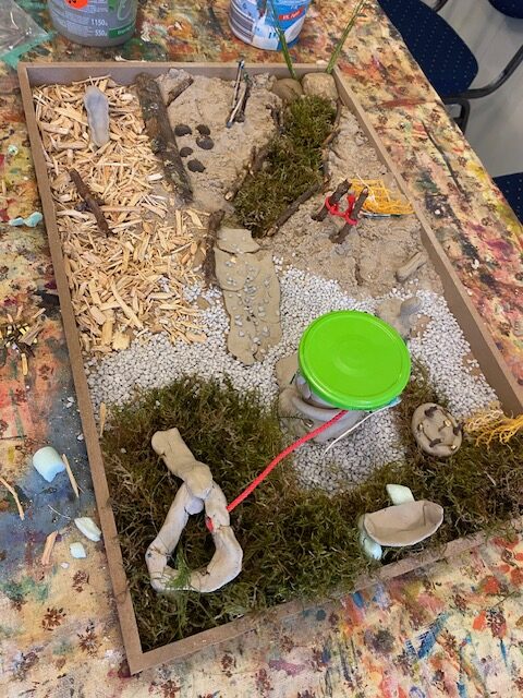 - Modellarbeit mit Naturmaterialien, um kreativ echte Spiellandschaften zu entwickeln